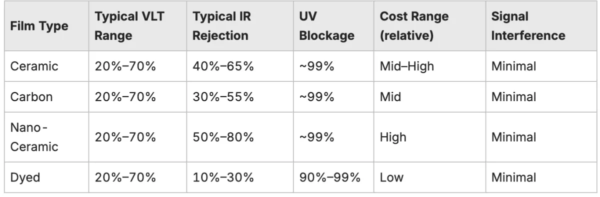 These combined benefits clearly explain why so many drivers consider tinting a smart investment in comfort, safety, and long-term vehicle value. Next, discover how different film technologies deliver these outstanding outcomes.